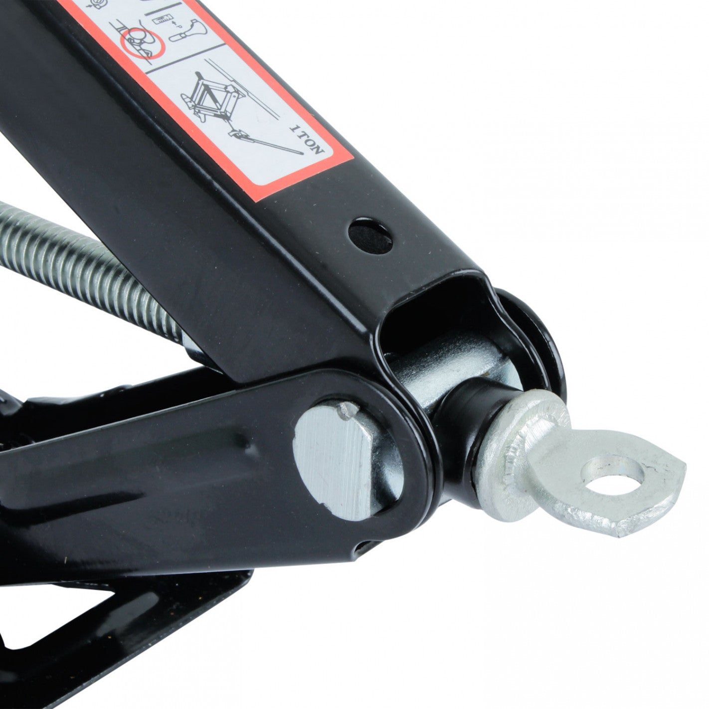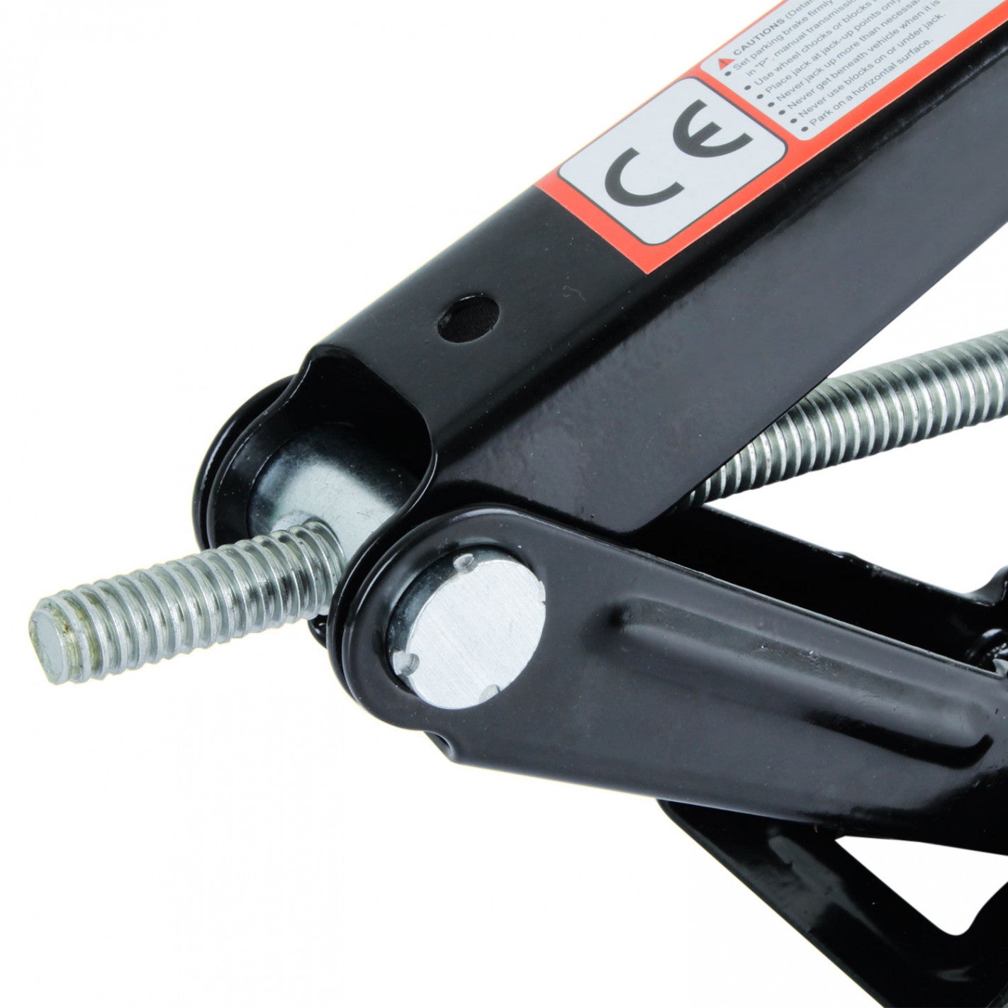 Gata tipo Tijera capacidad 1 Tonelada. Gata tipo tijera fabricada en acero sólido como unidad de reemplazo o un gato extra que se puede almacenar en el maletero de su coche. La base extra ancha ayuda a mantenerse estable y seguro, mientras que también hace que sea fácil de posicionar en virtud de cualquier vehículo. La manija plegable ofrece una respuesta rápida en el lugar y la velocidad cuando lo necesite. Está unidad certificado y es 100% probado en fábrica para la fiabilidad y seguridad. Levanta una carga de 1 tonelada a partir de 3 1/2 pulgadas a 15 1/16 pulgadas.