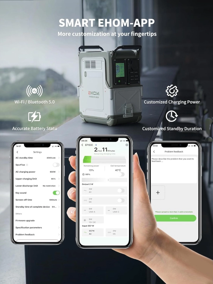 ESTACION DE ENERGÍA PORTÁTIL 600W EHOM EP600