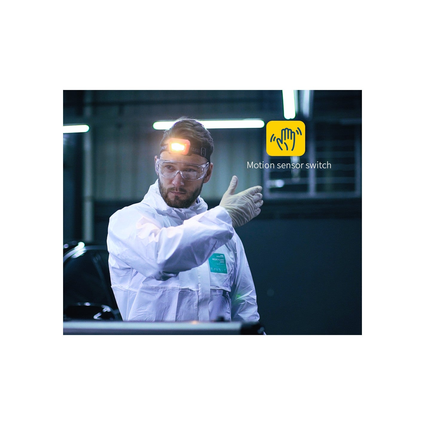 Posee bateria ion litio recargable, construcción robusta, cuanta con 3 intensidades de luz, además de contar con luz día, cuenta con angulación en 60°, encendido y apagado por movimiento, el elástico de ajuste a la cabeza es cómodo y antideslizante. Duración de carga: 3 horas.