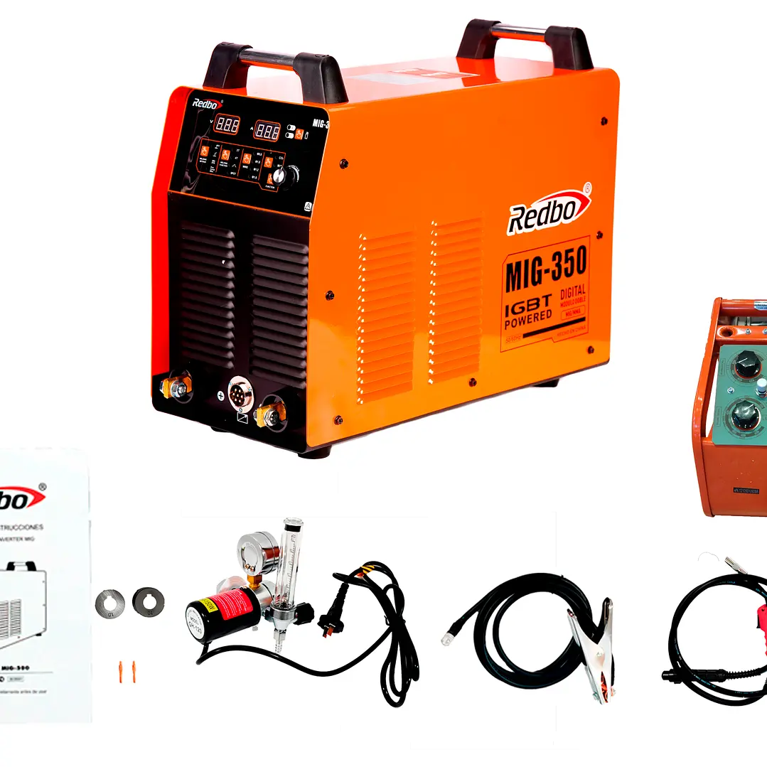 La soldadora Redbo MIG-350 es una herramienta profesional versátil que permite soldar con gas, sin gas, mediante arco manual y con la función LIFT TIG. Es compacta y ligera, con control de un solo comando para ajustar la corriente con precisión. Automáticamente sopla al finalizar la soldadura para mejorar la calidad de la costura. Apta para diferentes tipos de metales.