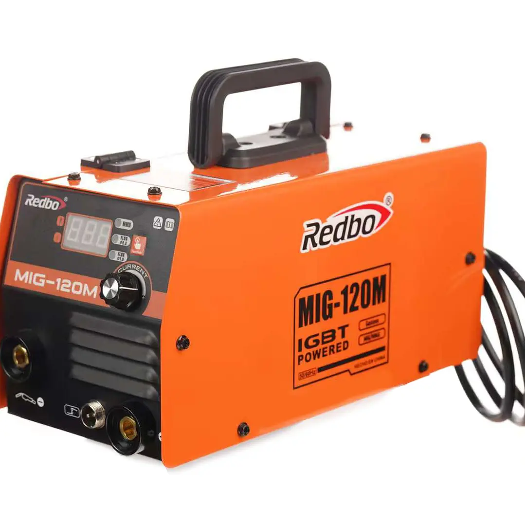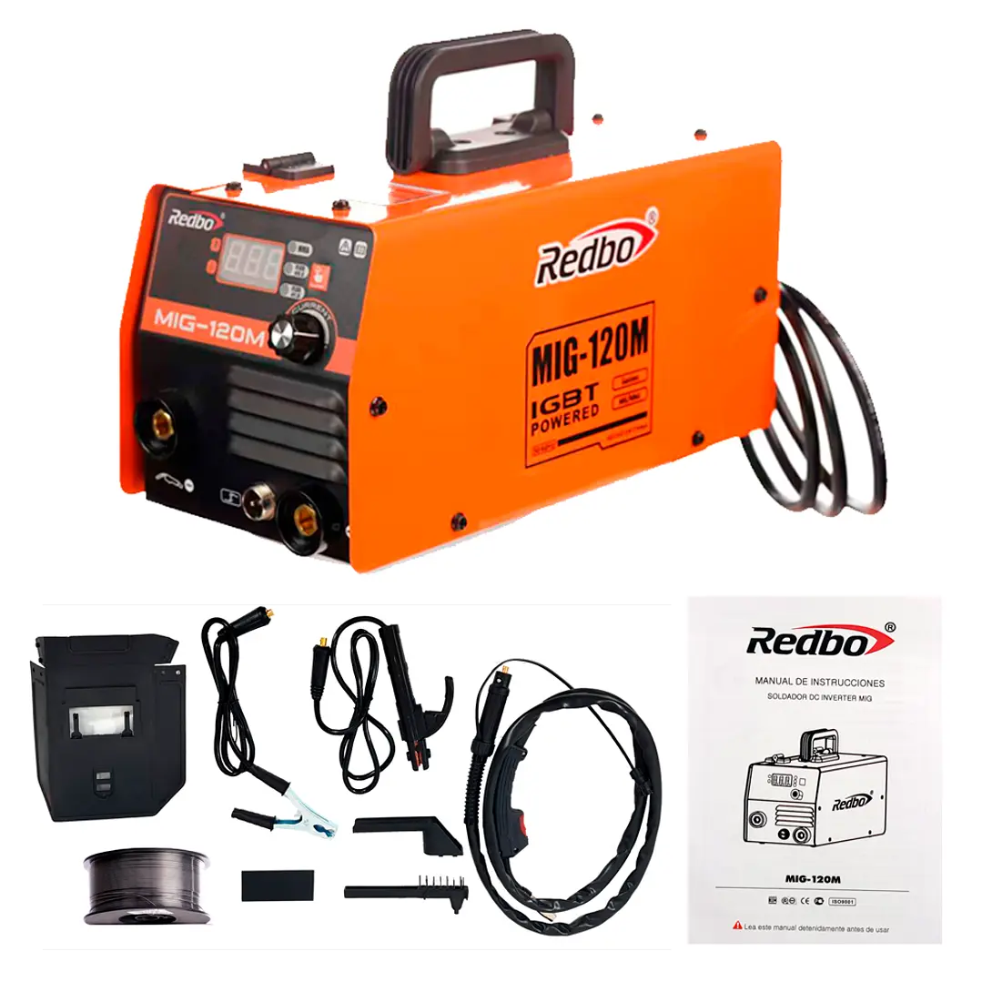 La soldadora Redbo MIG-120M es una máquina profesional semi automática 2 en 1, para soldadura sin gas o por arco manual, ideal para alambres flux. Es compacta y ligera, con display digital para ajustar la corriente. Tras la soldadura, sigue soplando durante unos segundos para una costura más perfecta. Ofrece máxima profundidad de soldadura y regulación de un solo comando para una operación eficiente. Con un factor de potencia de 0,73 y tensión en vacío de 55 V, es versátil y eficaz en diversas aplicaciones de soldadura.